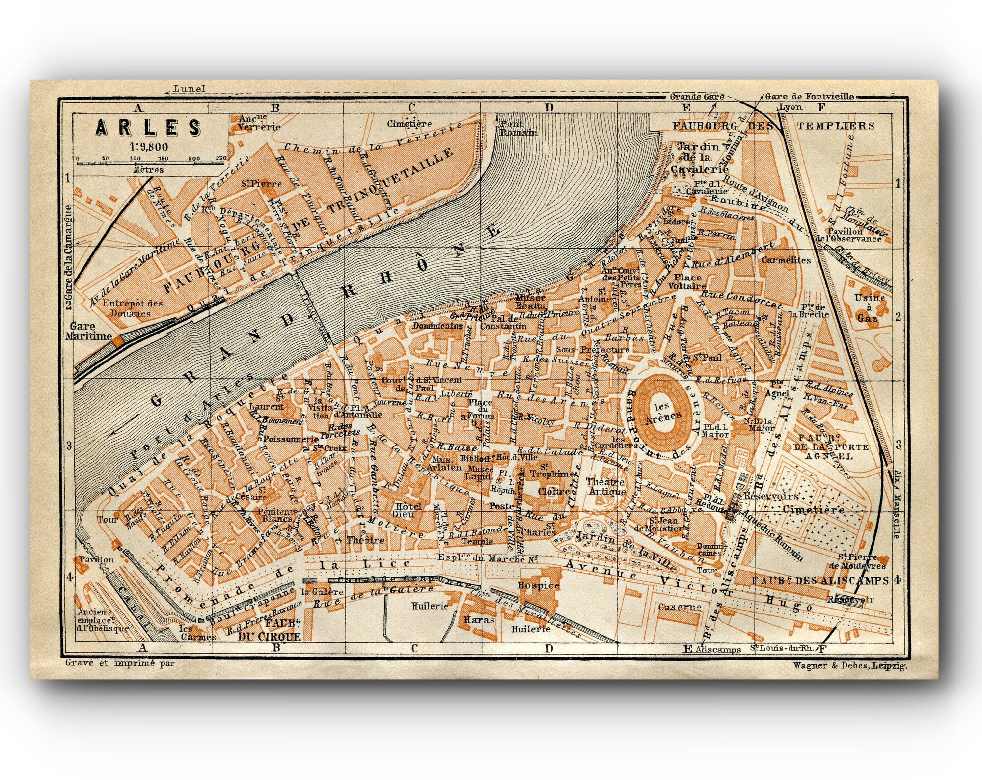 Old map of Arles in 1900. Buy vintage map replica poster print or